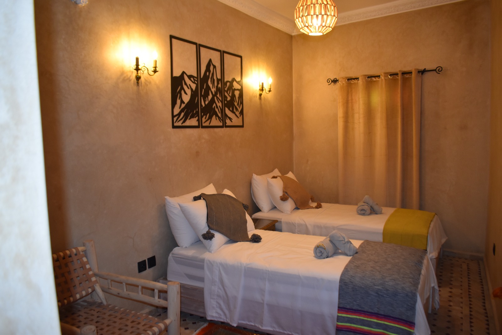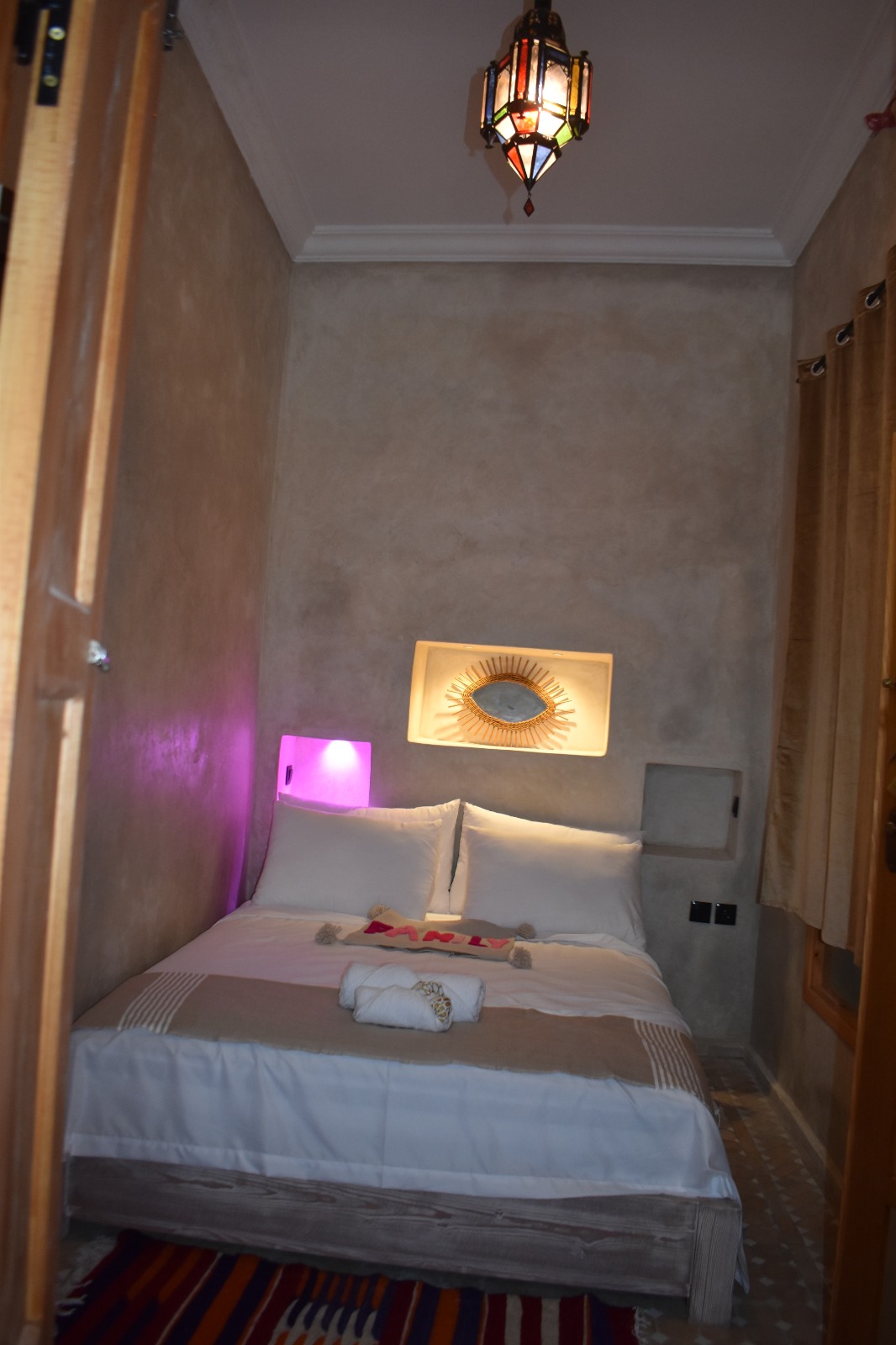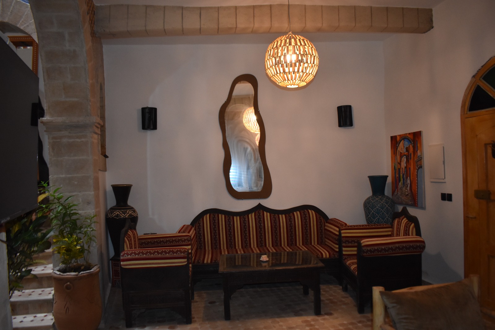Nestled in the Ahl Agadir district of Essaouira, Riad Mogantique-Essaouira Hotel is just 0.8 km from City Walls Monument. The riad features Wi-Fi throughout the property. The rooms are fitted with private bathrooms. Moulay Hassan Square is located a short distance from the accommodation, and such natural sites as Spiaggia di Essaouira Public Beach are 6 minutes’ walk away. Standing a mere 8 minutes on foot from Medina of Essaouira, the hotel is 13 minutes’ walk from Bab Doukkala. The property is situated very close to Palma Quad, and Gare Supratours bus station lies 5 minutes’ walk away. The seafood restaurant La Table by Madada is located around a 5-minute stroll from this Essaouira hotel.